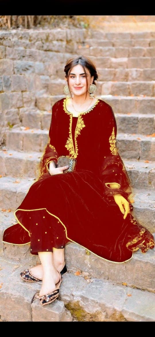 Designer Velvet Anarkali Kurti Long Gown Pant Dupatta Set Etsy Finland
